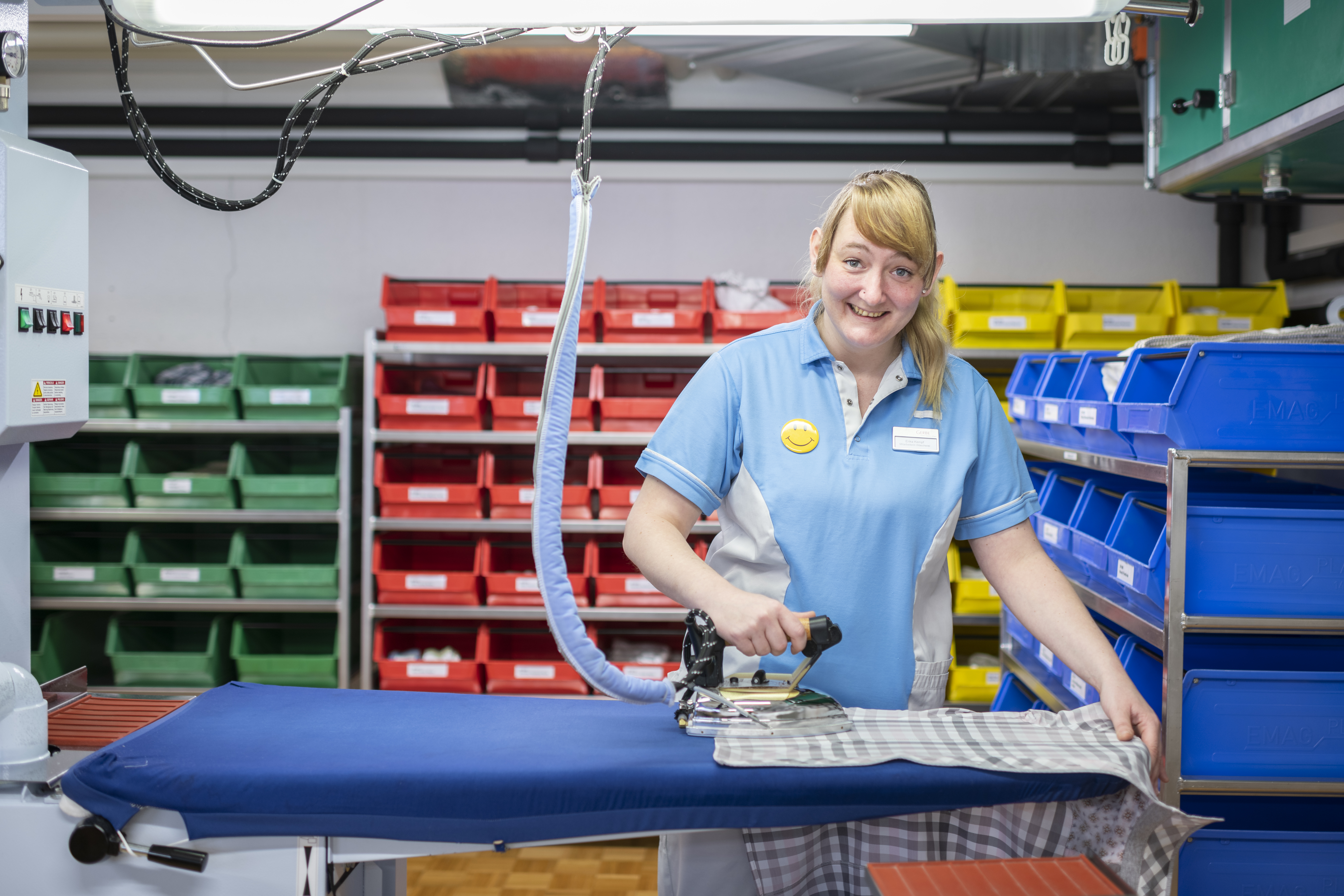 Das Alters- und Pflegezentrum GERBE in Einsiedeln hatte Jürg Schmidt durch eine frühere Zusammenarbeit in sehr guter Erinnerung. Ein Gespräch mit den Personalverantwortlichen brachte dann auch die erhoffte Chance. Erika erhielt einen Praktikumsplatz in der Lingerie. Das Team um Daniela Kälin, Leiterin Hotellerie, zeigte sich äusserst engagiert bei der Integration von Erika.
